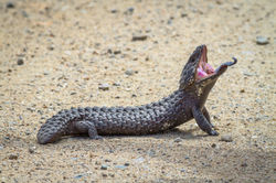 Двухглавый сцинк - типичное пустынное животное. Он может жить месяцы без еды и по нескольку дней без воды. Хвост сцинка, как и горбы верблюда аккумулируют жир и воду.