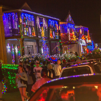 В Австралии так же, впрочем, как и во многих других католических, и не очень, странах, люди украшают свои дома к Рождеству. Основных способов проявить свою публично-показушную радость по поводу рождения Иисуса несколько: венками (Wreaths) на входных дверях, елками (Christmas Trees) и Рождественскими огнями (Christmas Lights). Особой любовью пользуется последний способ, который в примитивном варианте предполагает обертывание дома дешевыми китайскими электрическими гирляндами. Чем больше эти гирлянды непрерывно мигают и переливаются разными цветами, тем лучше. Высший пилотаж - не только обернуть гирляндами дом, но и постелить их плотным ковром на участке вокруг дома. Примерно в 99% случаев, проделав указанные действия с большим или меньшим количеством километров гирлянд, средний австралийский домовладелец потирает руки с чувством исполненного долга, становится в позу ожидания и выслушивает дифирамбы от жены. Иногда от детей, если папа соседского Сэма не ухитрился намотать на свой дом огней больше или ярче.